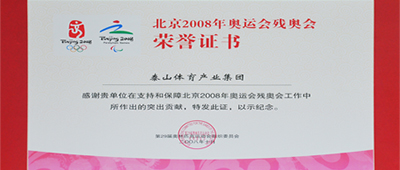 第二十九届奥林匹克运动会组织委员会为XC体育集团颁发北京2008年奥运会残奥会荣誉证书